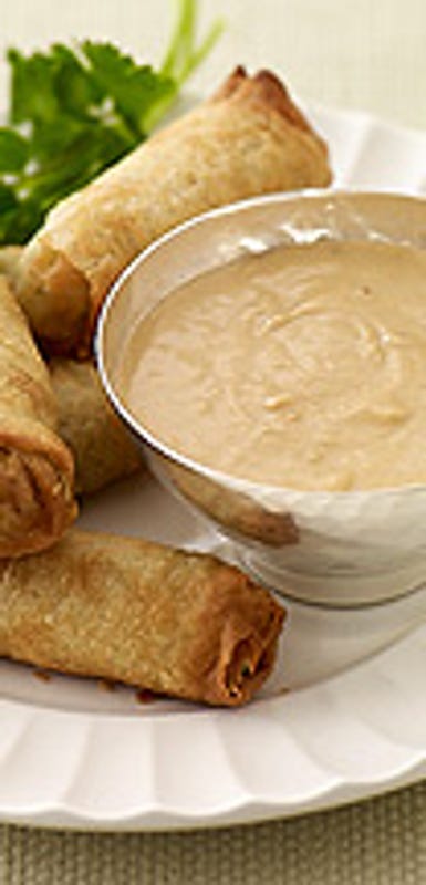 Asian-style stir fry and dipping sauces transform vegetable spring rolls, grains, and stir-fried veggies into a memorable main event. Any sauce that includes nutrient-rich ingredients like peanut butter or tahini will up the satiety factor of any meal it’s being paired with, especially when the recipe is otherwise low in protein and healthy fats.