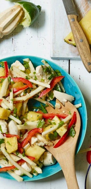 Chicken salad is often overlooked in favour of tuna salad, but it can be made in about the same time if you have leftover chicken breasts in the fridge. These crowd-pleasing chicken salad recipes are packed with flavour and can be stored in the fridge for up to 3-4 days. Enjoy a scoop of chicken salad in sandwiches or use it to top rice cakes, salads or grain bowls. Forget about boring, mayo-laden chicken salads, these recipes invite you to load up on fresh and flavourful ingredients: