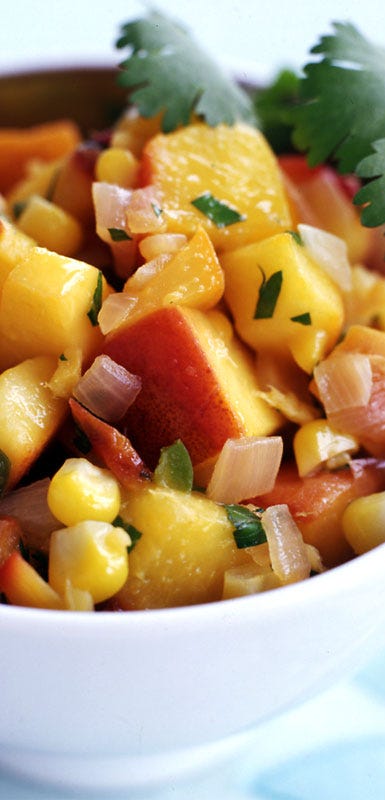 Semi-freestone peaches: Semi-freestone peaches share traits from both clingstone and freestone peaches. Their sweet flesh makes them a good choice for eating fresh, baking and as a base for preserves and fresh salsa.