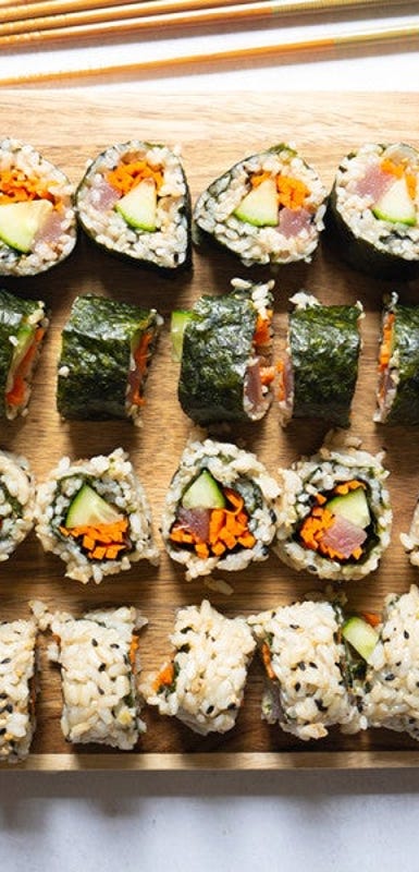 If you're intimidated by the thought of forming sushi maki rolls, give hand rolls a try. They combine all your favourite flavours of sushi, but instead of layering and rolling everything together in a perfect cylinder, you simply wrap them in a cone of seaweed for a more casual presentation.