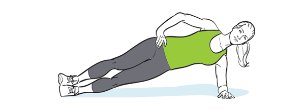 Duration: Hold the forearm plank for 45 seconds then switch to a Side plank (image below) for 20 seconds on each side