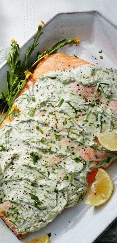 Let the salmon rest for a couple of minutes before serving. Season with fresh herbs, lemon or orange juice, capers, or red chili flakes.