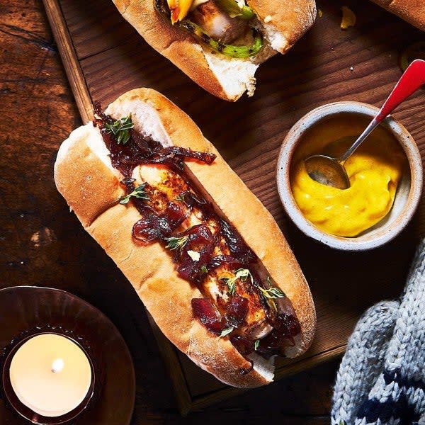 There’s no easier way to elevate the average hot dog than by topping it with caramelized onions that have been slow-cooked with fresh thyme and balsamic vinegar. The onions can be prepared well-ahead of time, up to two days in advance, simply bring them to room temperature before serving. Whether you cook your dogs on a BBQ or on an indoor grill, grilling the hot dogs adds a mouth-watering smoky taste that ties all the flavour components together.