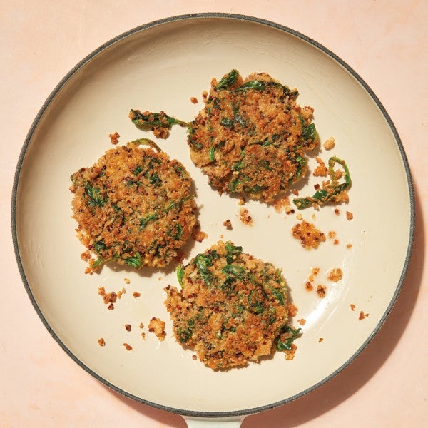 The small grains of quinoa make it a natural for molding into crispy pan-fried cakes bound with sharp cheddar. Top with some poached or scrambled eggs and suddenly this dish is brunch-worthy.