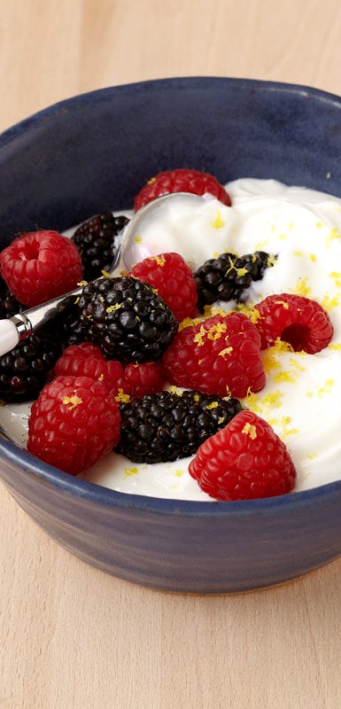 Lorsqu’il s’agit d’idées de déjeuner fraîches et rassasiantes, les parfaits et les bols de yogourt répondent à tous les critères. Ces recettes ne pourraient pas être plus faciles à réaliser, et l’utilisation de yogourt grec sans matières grasses et riche en protéines (un aliment ZéroPoint!) et de fruits riches en fibres augmente le facteur de satiété. Idéalement, les parfaits doivent être faits à l’avance pour que les saveurs se dégagent et se répandent dans le yogourt. Si vous n’avez pas de verres à parfaits, n’importe quel verre à boire ou tasse transparente fera l’affaire pour mettre en valeur les couches délectables créées par le yogourt et les fruits (un verre opaque fera également l’affaire, vous devrez simplement faire appel à votre imagination pour visualiser la création en couches que vous avez réalisée). Pour faire changement, essayez d’ajouter des ingrédients moins traditionnels comme du matzo brei, du beurre d’arachide, des amandes, des fruits rôtis et de la confiture de fruits au lieu des fruits habituels coupés ou en compote.
