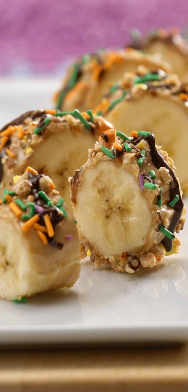 Heureusement, les bananes ont un super pouvoir que l’on sous-estime : elles peuvent remplacer la farine et le sucre dans de nombreuses recettes de sorte qu’elles en diminuent la valeur en PointsFutés tout en ajoutant de l’humidité et un goût sucré naturel. Elles se congèlent aussi parfaitement bien; vous n’avez donc pas à toutes les utiliser dans la seconde. Voici comment préserver et savourer chaque fruit d’un régime de bananes. Aucune banane ne sera laissée pour compte!