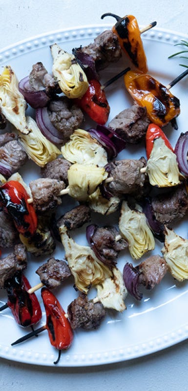 - Préparez des brochettes et des souvlakis presque instantanément en utilisant des cubes d’agneau cuit plutôt que cru. Dans le cas de brochettes, commencez avec les cubes d’agneau à température ambiante et faites-les chauffer seulement lorsque les légumes sont bien cuits.
