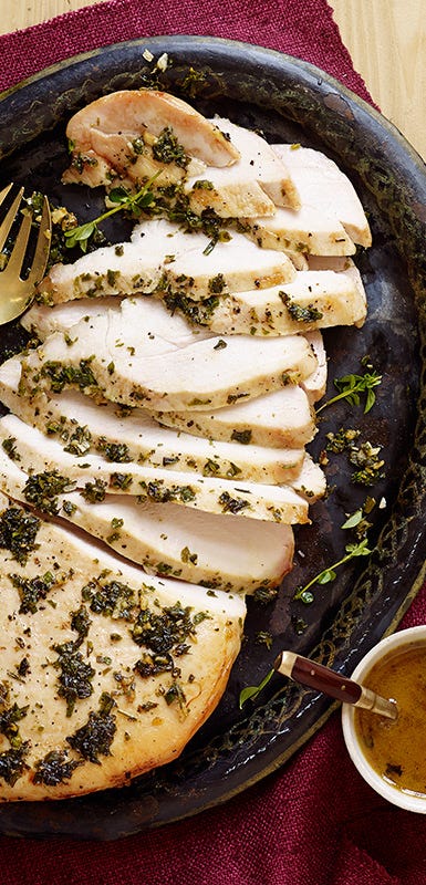Offrant une énorme quantité de 26 grammes de protéines maigres par portion, la dinde est bien plus qu’un simple volatile des Fêtes! Savoureuse et étonnamment polyvalente, la dinde est tout aussi délicieuse dans sa forme traditionnelle rôtie que lorsqu’elle est transformée en pâté chinois, en pain de viande ou en tourtière. L’astuce pour une poitrine de dinde bien juteuse? Marinez-la au préalable (voir la recette de la dinde marinée sur plaque ci-dessous) et utilisez un thermomètre de four pour éviter de trop la cuire accidentellement.