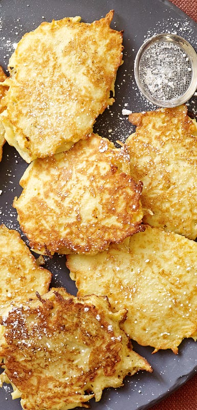 Doré, croustillant et délicieux – voilà trois mots qui décrivent parfaitement les latkes, également appelés crêpes de pommes de terre. Habituellement frites dans l’huile, les recettes de latke ci-dessous adaptées à WW réduisent cette composante essentielle tout en donnant un résultat semblable. Nous avons également inclus des variantes à base de pommes et de chou-fleur et nous vous recommandons d’essayer les recettes avec d’autres légumes racines comme la patate douce, les carottes et le panais. Surtout, n’oubliez pas de recouvrir vos latkes d’une cuillerée de crème sure faible en matières grasses, de yogourt grec nature ou de compote de pommes maison.