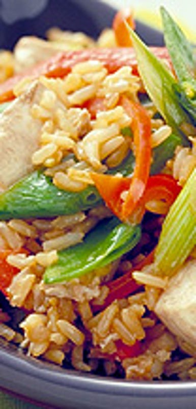 Selon le type de riz que vous faites cuire, suivez les recommandations indiquées sur l’emballage pour la proportion riz-eau. Mettre l’eau ou le bouillon dans l’Instant Pot et brasser. Mettre le couvercle et le verrouiller; fermer la soupape de pression. Appuyer sur « Manual » et régler le chronomètre à 8 minutes. Faire cuire le riz, puis laisser reposer jusqu’à ce que la pression soit évacuée (la soupape à flotteur métallique replongera sur le couvercle), environ 20 minutes. Servir ou retirer de la casserole et placer dans un contenant hermétique et réfrigérer.