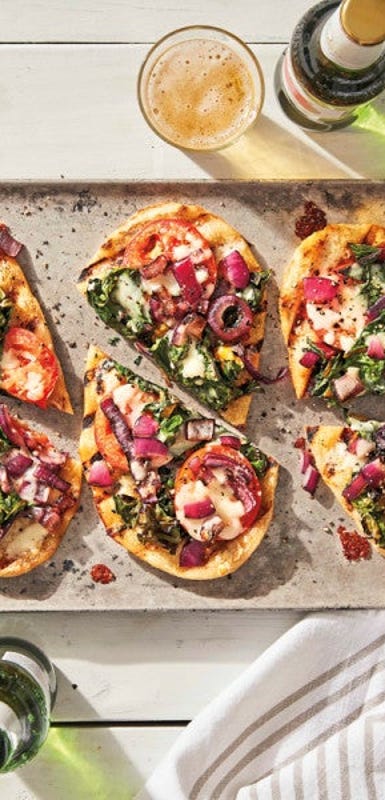 Ce n’est pas parce que vous ne mangez pas de viande que vous ne pouvez pas organiser un barbecue délicieux et réussi. Si vous êtes déjà mordu de la salade César, vous serez renversé par notre version allégée, qui fait appel à des cœurs de romaine croquants et grillés et une vinaigrette relevée. Nous avons inclus plusieurs types de pains plats grillés parmi lesquels choisir; sentez-vous libre de faire toutes les recettes ou d’en essayer une ou deux qui se démarquent. Pour une option plus protéinée, essayez de faire griller du tofu en tranches épaisses, façon bifteck, avec des champignons et des oignons super savoureux : personne ne remarquera l’absence de viande! Pour compléter le thème, nous vous suggérons de terminer votre repas par un pain plat aux fruits d’été grillés, que vous pouvez agrémenter de vos fruits de saison préférés.