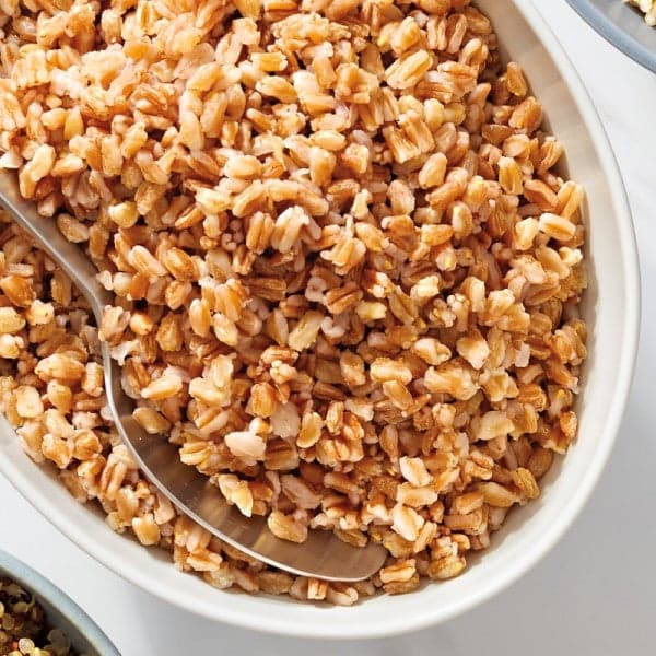 Porter à ébullition à feu vif une casserole moyenne remplie d’eau avec 1 ml (1⁄4 c. à thé) de sel. Incorporer 310 ml (11⁄4 tasse) d’épeautre à grains entiers. Réduire à feu moyen. Faire bouillir l’épeautre pendant 30 minutes ou jusqu’à ce qu’il soit al dente.