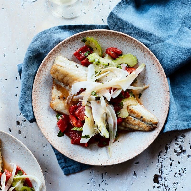 Vivaneau rouge grillé avec relish aux poivrons rôtis et fenouil