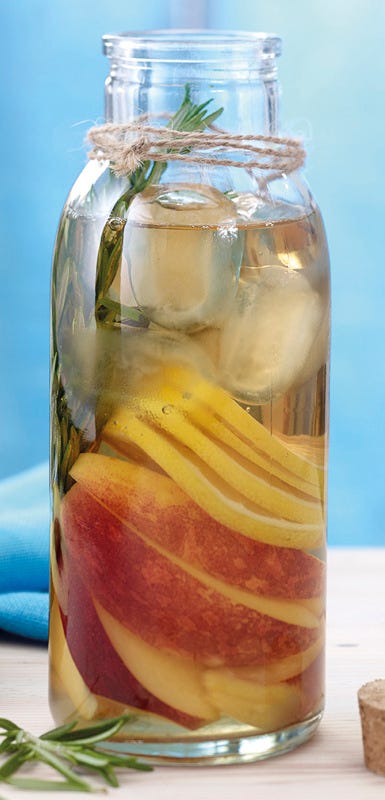 - Nun kannst du mit Zitronen, Pfirsich oder anderen Früchten den Tee geschmacklich verfeinern.