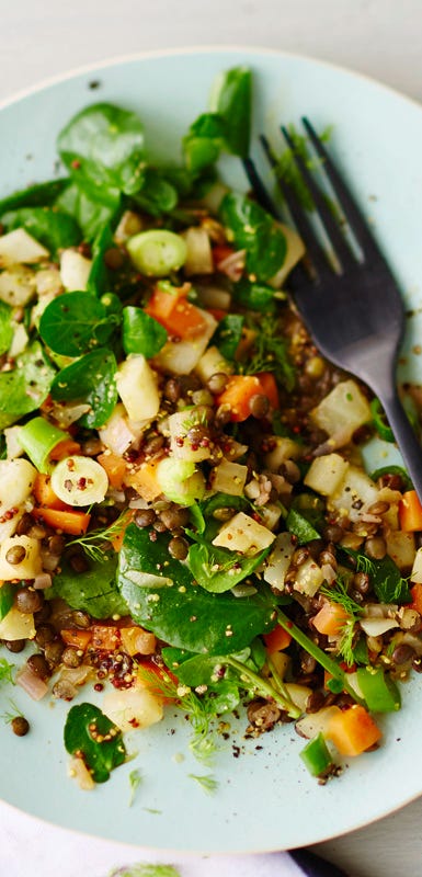 Fenchel schmeckt auch roh, sodass er eine tolle Basis für einen Salat ist. Dazu Fenchel, wie im Video beschrieben, gründlich waschen, Strunk entfernen und dann wie im Rezept angegeben in Streifen oder Würfel schneiden. Selbst das Fenchelgrün kannst du noch zur Deko oder zum Würzen verwenden.