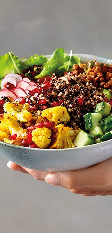 - Ersetze stärkehaltige Lebensmittel wie Reis, Teigwaren, Couscous oder Kartoffeln durch kleine Mengen Quinoa.