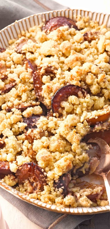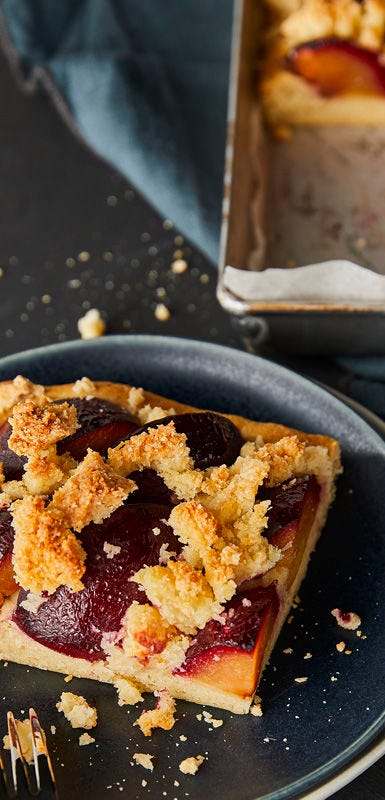 Pflaumen zählen zum Steinobst, sie besitzen also einen einzigen, von Fruchtfleisch ummantelten, harten Kern. Pflaumen sind unglaublich vielfältig und schmecken herrlich als Blechkuchen auf Hefeteig oder Quark-Öl-Teig, mit Streuseln als Crumble, aber auch in Muffins, Buchteln oder als Wähe in Rührteig. Am liebsten mit einer Prise Zimt, einem Klecks Sahne oder Vanilleeis.