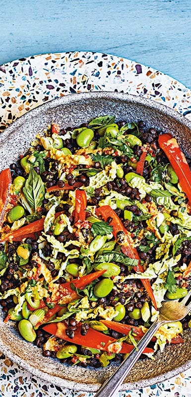Gemüse-Brot-Platte mit Peperoni-Bohnen-Dip