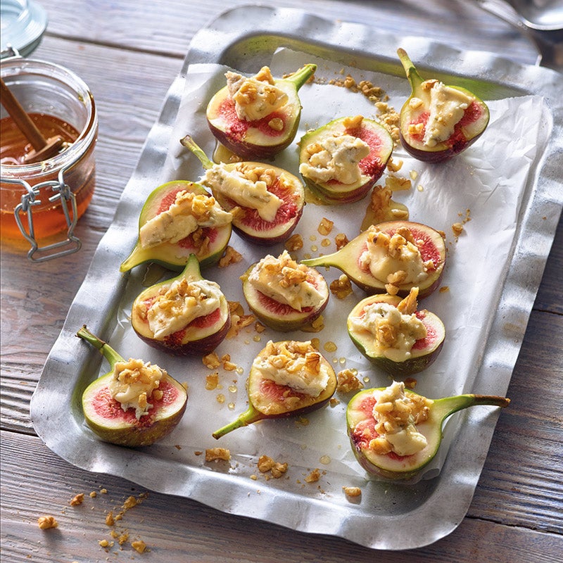 Feigen waschen, halbieren und auf einer Servierplatte anrichten. Walnüsse fein hacken. Gorgonzola in kleine Stücke schneiden, auf den Feigen verteilen, mit Walnüssen bestreuen und mit Honig beträufeln. Gorgonzola-Feigen geniessen.
