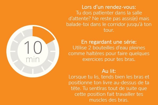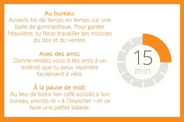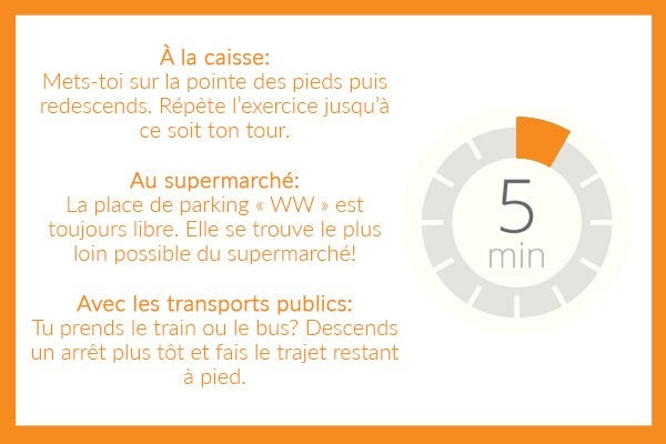 WeightWatchers® te donne des conseils pour privilégier une alimentation saine et variée tout en te faisant plaisir. Mais, nous aimerions aussi te sensibiliser au fait qu'associer un peu de mouvement à ta perte de poids ne pourra être que bénéfique pour toi. Nous savons qu’il est difficile de faire le premier pas afin d’intégrer plus d’activités physiques dans la vie quotidienne. C'est pourquoi nous souhaitons t'aider en te proposant quelques exercices fitness rapides. La bonne nouvelle, c'est qu'ils te prendront 15 minutes maximum et tu peux les faire chez toi. Alors, c’est jouable non? Nous te montrons comment!