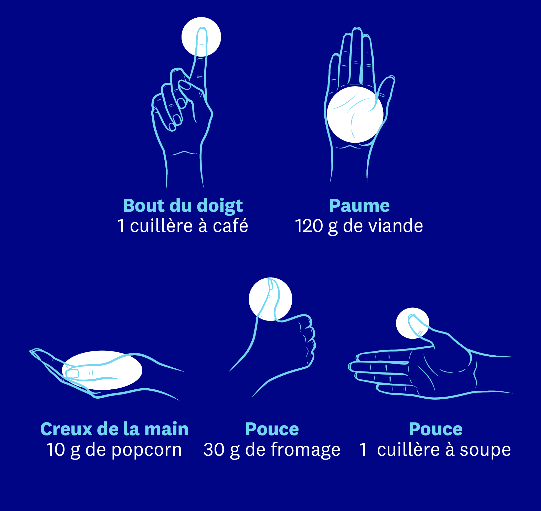 Évalue et fais-toi confiance ! Ta main est un allié de choix pour évaluer la taille des portions : après avoir estimé les quantités dans ton assiette, note tous les ingrédients et calcule les points. Courage ! Même si tu omets quelques points. Du moment que tu auras tout noté en ton âme et toute conscience, tu resteras sur la bonne voie.