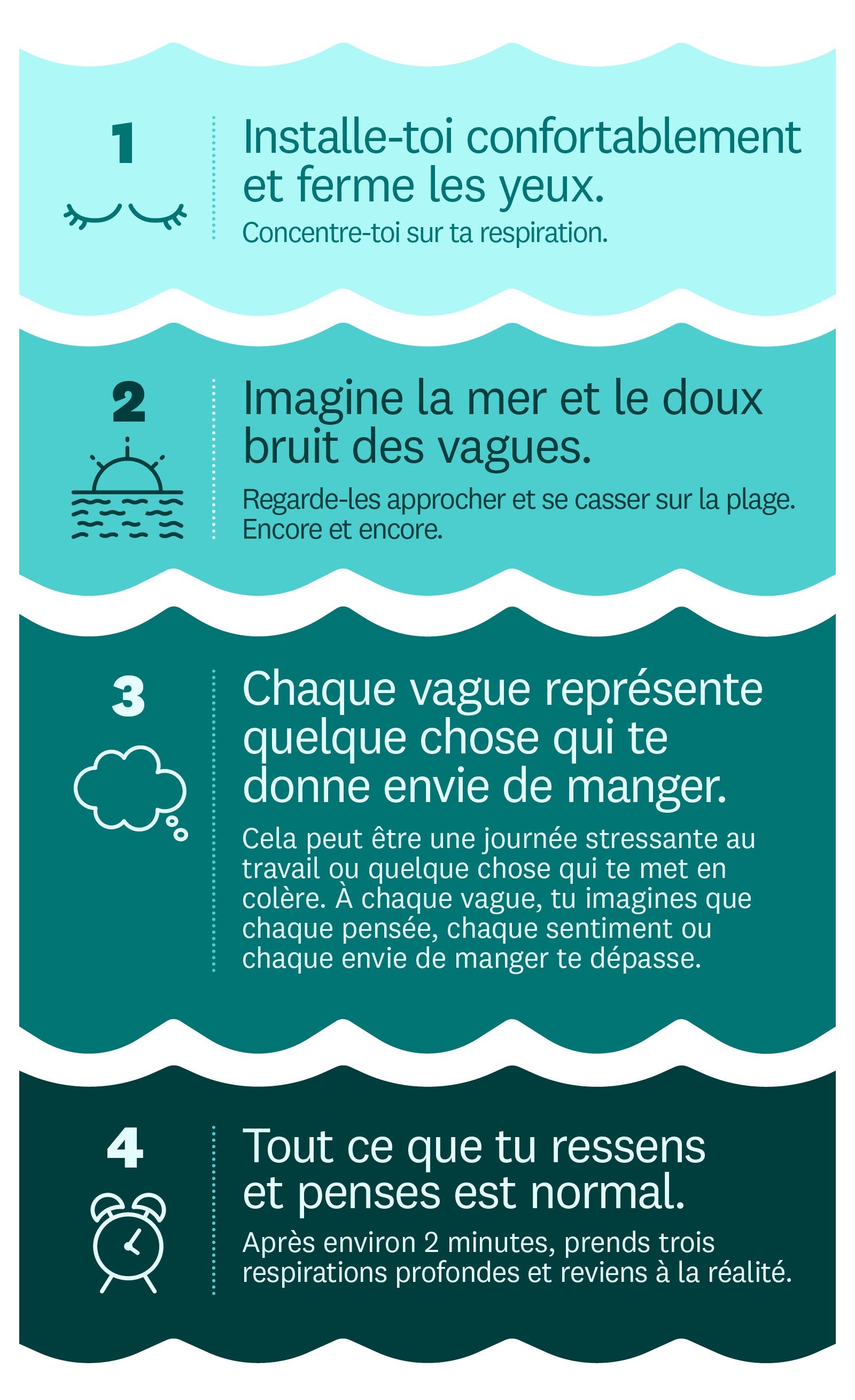 Tu voudrais tenir bon et atteindre tes objectifs de perte de poids et de bien-être ? La méditation présentée ci-dessus n’est vraisemblablement pas une solution durable, mais elle peut t’aider à reconnaître et à accepter ce qui te tente. Elle peut t’aider à reprendre le contrôle et permettre ainsi à l’envie de manger de disparaître d’elle-même.