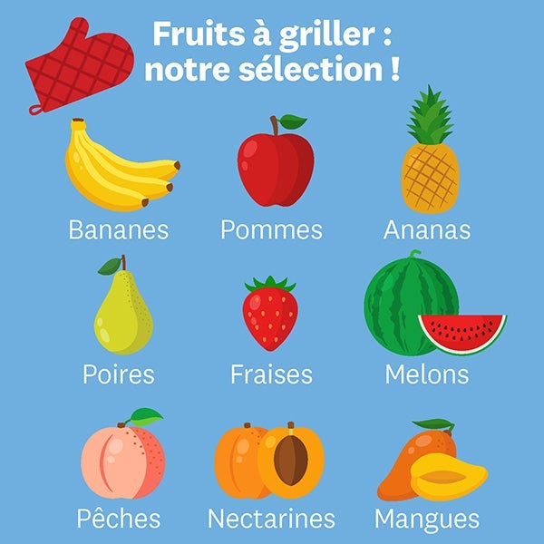 Les légumes ne sont pas les seuls à faire bonne figure sur le gril. Certains fruits sont également particulièrement savoureux après un passage sur le feu. Dispose-les en brochettes colorées, par exemple, et veille à ce que les fruits soient mûrs mais pas trop mous. Le gril ne doit pas être trop chaud.