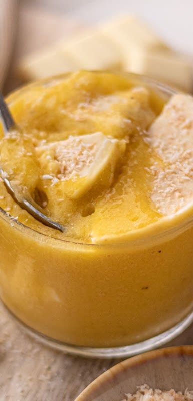 La meilleure façon d’obtenir un sorbet crémeux est d’utiliser une sorbetière. Si tu n’as pas de sorbetière, il est préférable de mettre le sorbet dans un bol peu profond, de le congeler et de le remuer régulièrement pendant la congélation, par exemple toutes les 30 minutes. Si tu aimes que ce dessert peu calorique soit un peu plus onctueux, tu peux incorporer des blancs d’œufs dans la préparation avant de la congeler.