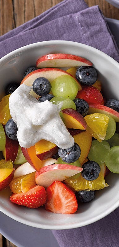 Cependant, pour que ta salade de fruits garde son aspect frais et croquant même après plusieurs heures de conservation au réfrigérateur, il est recommandé soit d'ajouter un agrume, comme le pamplemousse ou l'orange, dans la salade de fruits, soit d'arroser les fruits coupés avec le jus d'un citron. L’acide ascorbique (vitamine C), contenu dans les agrumes, empêche les fruits frais de s'oxyder et de prendre une couleur brunâtre.