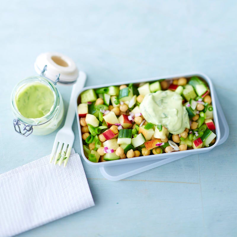 Salade de concombre et pois chiches avec vinaigrette à l’avocat
