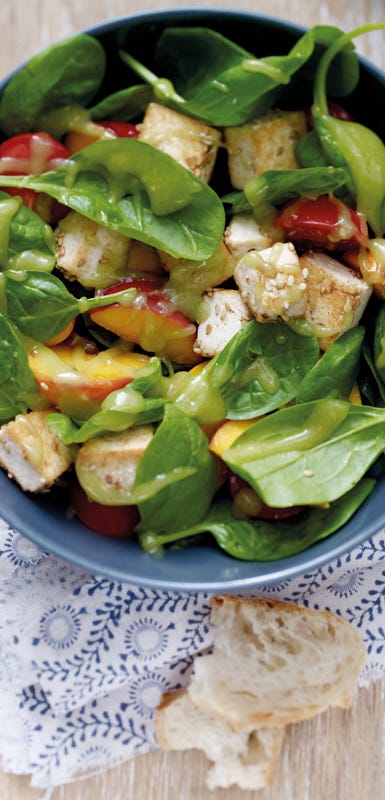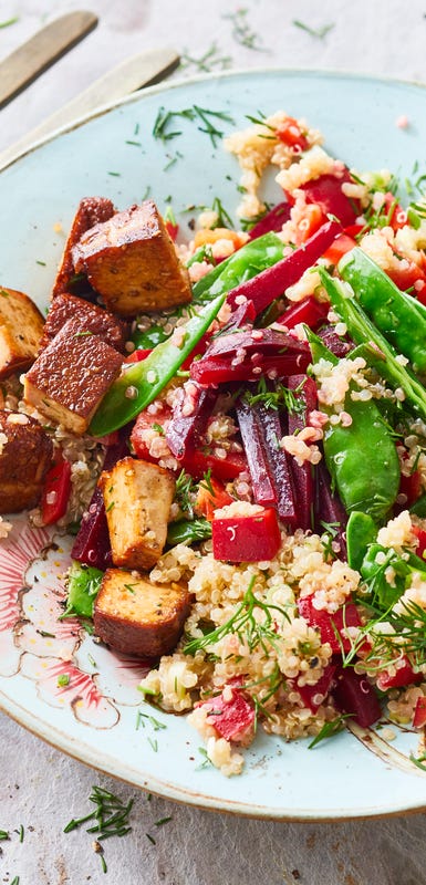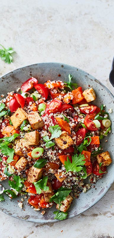 - Le tofu se marie parfaitement avec une salade de quinoa fraîche, par exemple. Tu trouveras la recette dans l’app WeightWatchers®.