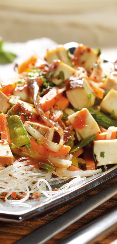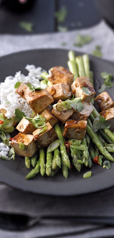 Le tofu se prête merveilleusement bien à la cuisine végétarienne et vegan. Comme le tofu nature n’a que peu de goût spécifique, on peut le rehausser avec une marinade épicée.