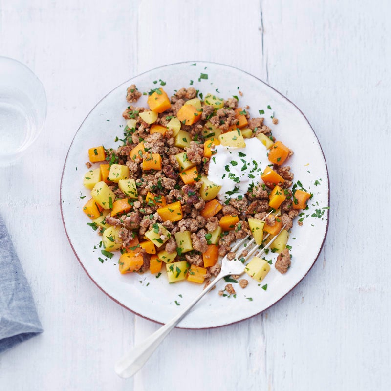 Potée de viande hachée, pommes de terre et carottes