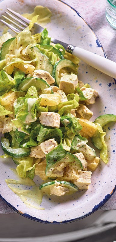 Un seul ingrédient riche en protéines suffit à transformer une salade d’accompagnement en repas consistant. Des exemples ? Thon, saumon, truite, sandre, crevettes, surimi, pois chiches, haricots, lentilles, poitrine de volaille, mozzarella, feta, parmesan, tofu ... Ne fixe aucune limite à ton imagination. Pour savoir à quelle quantité correspond une portion et combien de SmartPoints tu dois comptabiliser, consulte l’app (pour iOS/Android) ou la liste de SmartPoints.