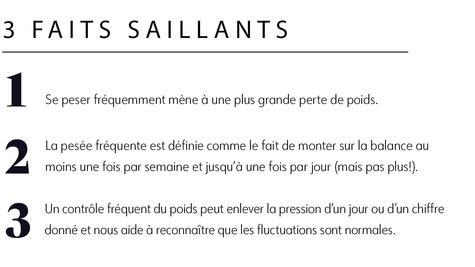 Une routine de pesée peut t'aider à garder le cap face aux difficultés courantes (et à tes craintes). Et c'est important, car des études montrent qu'une pesée régulière peut aider à perdre plus de poids et à le maintenir.