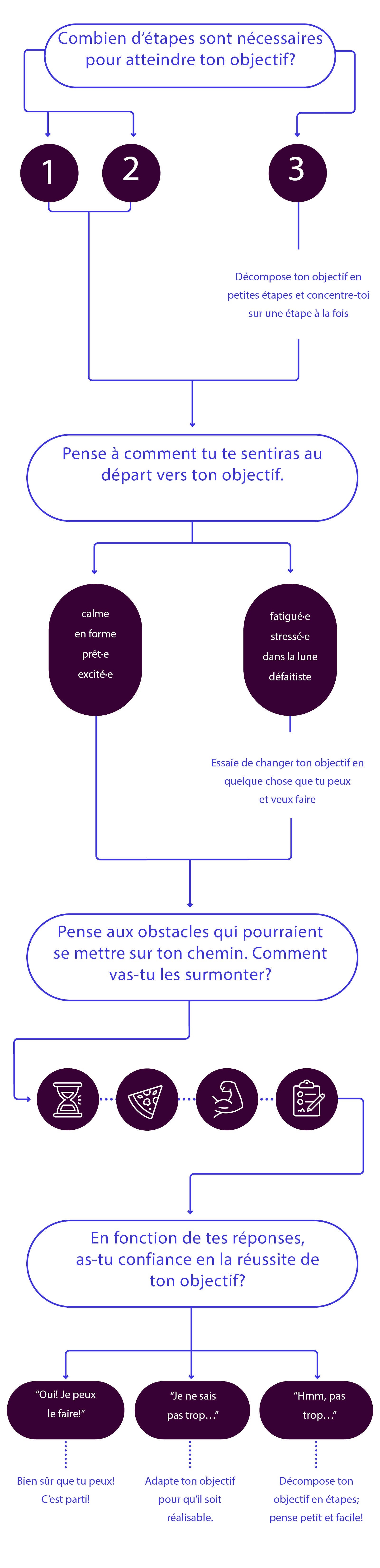 « Je sais ce que je devrais faire, mais je ne le fais pas! » Cette phrase te semble familière, n’est-ce pas? À nous aussi! La prochaine fois que tu entreprendras quelque chose, réfléchis précisément à ce que tu veux atteindre, et comment. Ensuite, pose-toi quelques questions pour mettre en œuvre tes intentions.