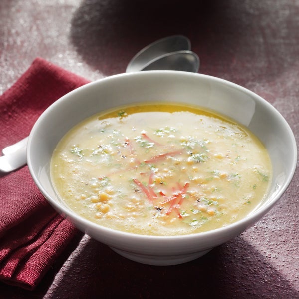 Suppengemüsewürfel, Chilistreifen und Linsen zufügen, mit Wasser ablöschen und ca. 30 Minuten köcheln lassen. Suppe pürieren und mit Salz, Pfeffer, Kreuzkümmel und Zitronensaft abschmecken. Arabische Linsensuppe mit Koriander garniert servieren.