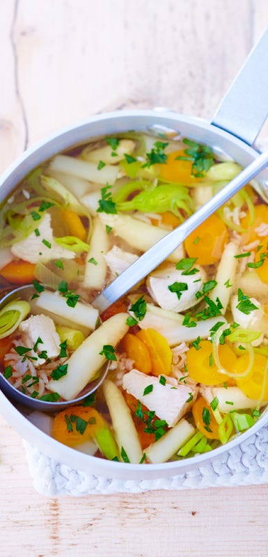 7. Koche eine Suppe oder einen Eintopf. Sie wärmen dich von innen, lassen sich gut vorbereiten, einfrieren und sind ideal zum Mitnehmen für die Mittagspause.