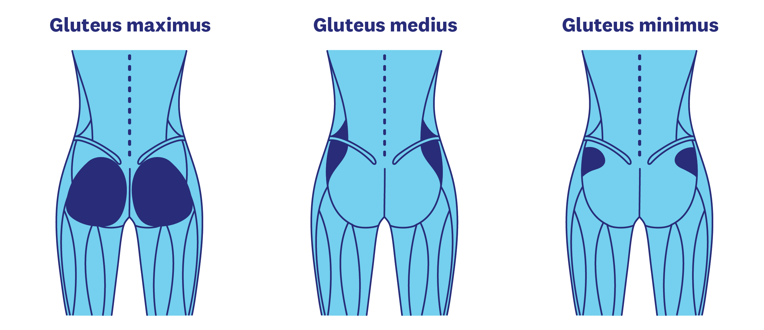 • Gluteus Medius: Dieser dicke Muskel befindet sich unterhalb des Gluteus Maximus und ist in erster Linie für die Hüftextension und -rotation verantwortlich.