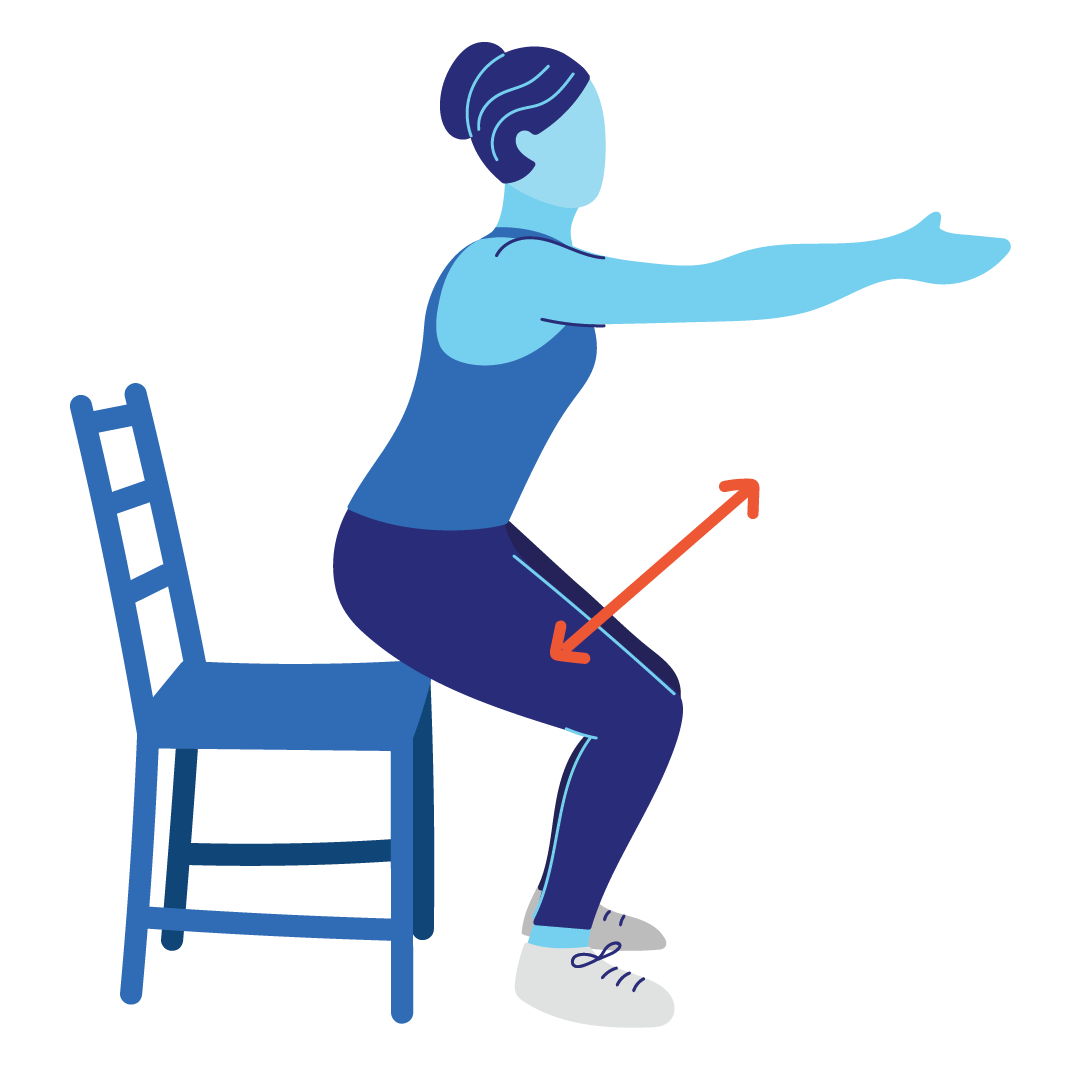 • Kurz bevor dein Po den Sitz berührt, spannst du deinen Hintern und deine Oberschenkel an, um wieder aufzustehen.