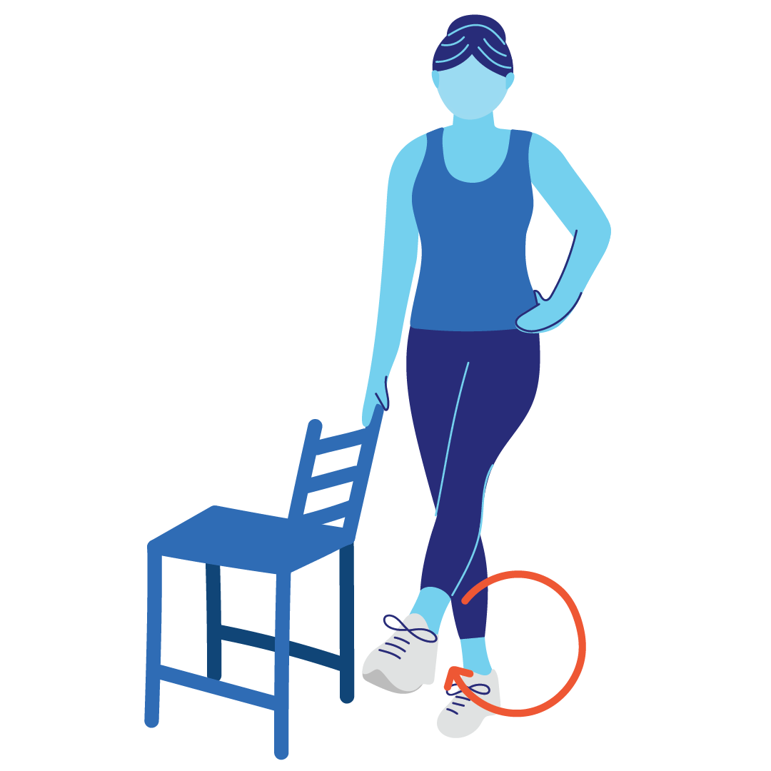 • Halte die Zehen gestreckt und zeichne mit dem Bein einen Kreis im Uhrzeigersinn.
