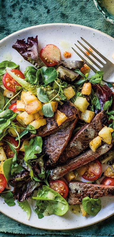 Wir nutzen Oliven- und Rapsöl, vereinzelt auch Erdnuss- oder Sesamöl, die jeweils einen intensiveren Eigengeschmack mitbringen. Zu den Essigen gehören heller und dunkler Balsamicoessig sowie Weißweinoder Rotweinessig, die du nach Belieben austauschen kannst.