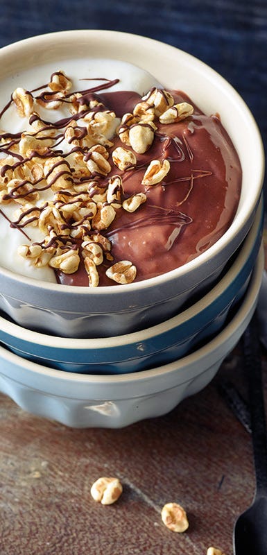 Du kannst neben Puderzucker, Zucker und Honig auch mit braunem Zucker, Ahornsirup oder Agavendicksaft süßen.