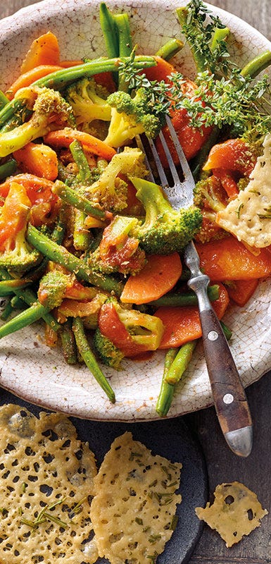 Idealerweise sollten es mindestens 3 Portionen Gemüse am Tag sein. Je bunter und vielfältiger, desto besser. Ob Salat, Gurken, Tomaten oder Kohl – das Gemüse der Saison hat Vorrang und sollte reichlich auf den Teller kommen. Vor allem Hülsenfrüchte punkten mit ihrem ausgewogenen Verhältnis von komplexen Kohlenhydraten, sättigendem Eiweiß und Ballaststoffen. „Ballaststoffe können die Gewichtsabnahme unterstützen, da sie die Nahrung länger im Magen halten und dadurch für ein längeres Sättigungsgefühl sorgen“, erklärt Miriam Rohmann, Diplom-Oecotrophologin und Diabetesexpertin bei WW. „Dazu kommt, dass die Ballaststoffe in den Hülsenfrüchten durch den Gärungsprozess bei der Verdauung die Bildung von Darmbakterien fördern, die wiederum dazu beitragen können, den Blutzuckerspiegel zu regulieren“, so die Expertin.