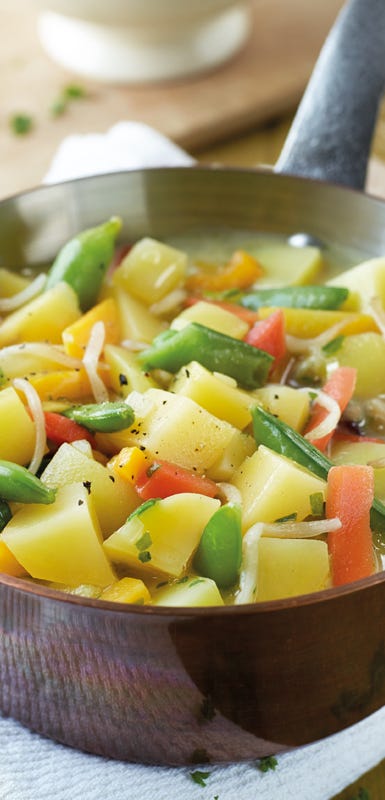 Basis eines Eintopfs ist Gemüse, das je nach Geschmack mit Fleisch, Kartoffeln, Nudeln oder Hülsenfrüchten kombiniert wird.