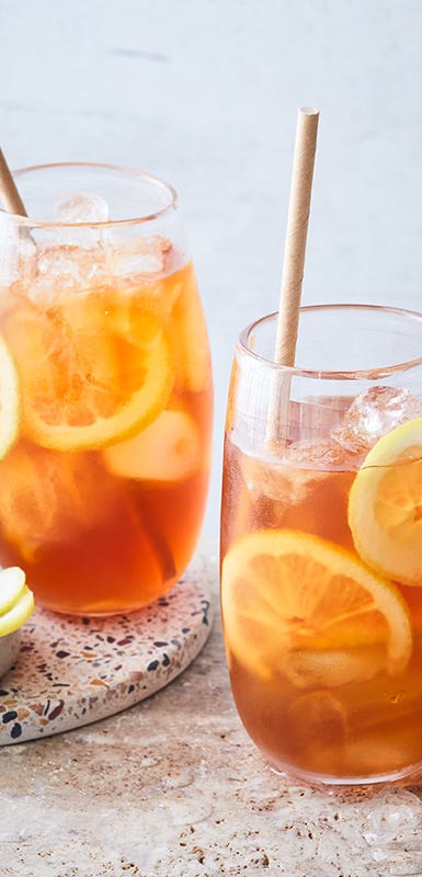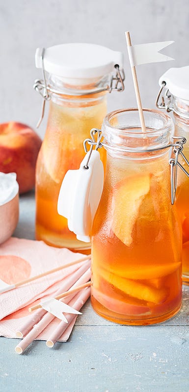 - Nun kannst du mit Zitronen, Pfirsich oder anderem Obst den Tee geschmacklich verfeinern.
