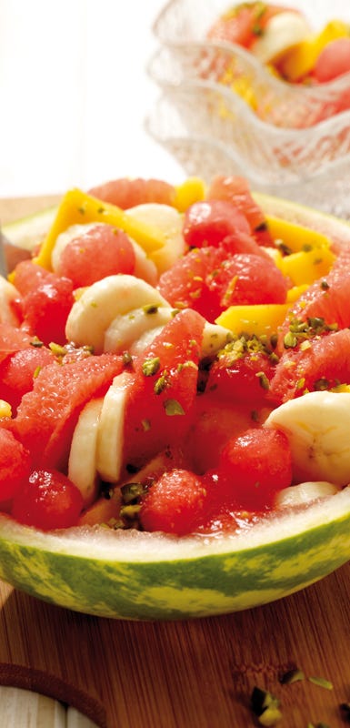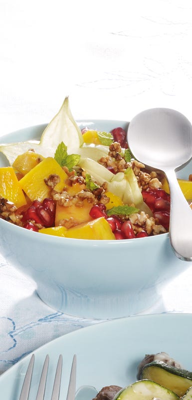 - Erfrischend: Für die heißen Jahreszeiten empfiehlt sich als Erfrischung ein Obstsalat mit einem Minzdressing aus Zitronensaft, Honig und gehackten frischen Minzblättern.