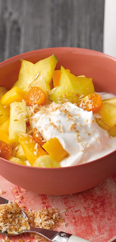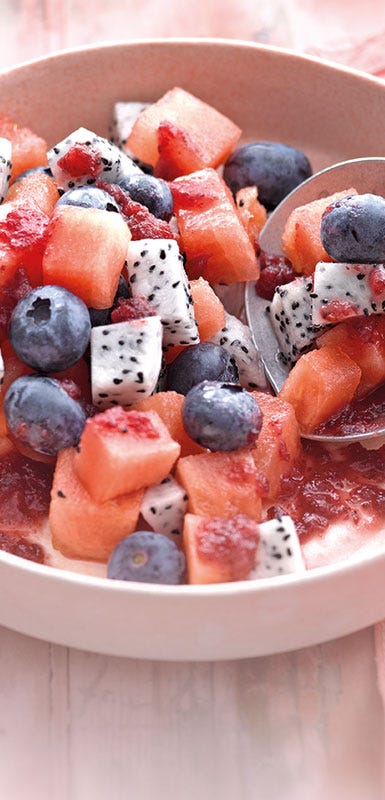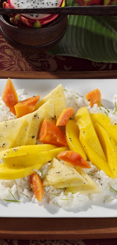 Tipp: Wie wäre es mal mit einer ausgefallenen Thai-Art Variante mit Papaya, Ananas, Mango, Pitahaya, Ingwer, Limetten und Chilischote? Oder aber mit einem exotischen Obstsalat mit Cranberrydressing?