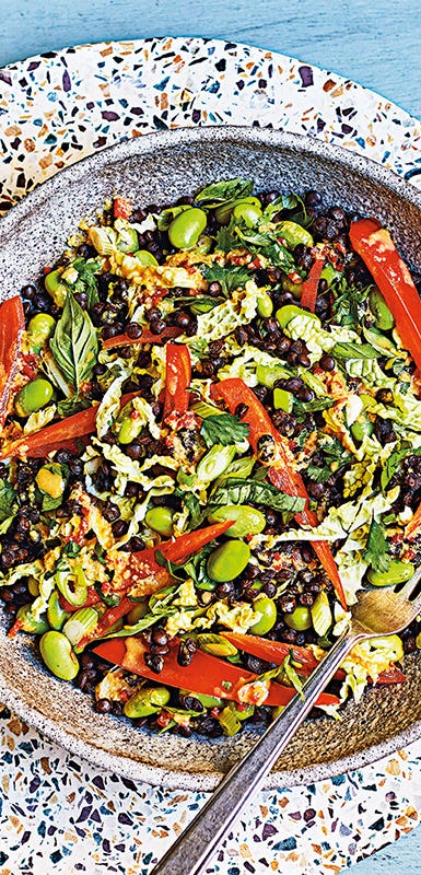 Sina Peters empfiehlt, auch die Form zu variieren. „Ich habe Edamame zum Beispiel kürzlich als ‚Reis‘ gegessen“, sagt sie. „Im Vergleich zu ebenfalls schmackhaftem Blumenkohl-Reis bietet diese Variante einen höheren Eiweißgehalt.“ Bereite ihn selbst zu und zerkleinere die Sojabohnen mit deiner Küchenmaschine, bis sie Reiskörnern ähneln.