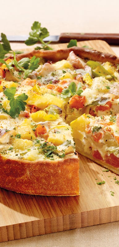 Bei der Quiche handelt es sich meist um einen herzhaften Kuchen aus knusprigem Mürbeteig mit einer würzigen Füllung in einem Milch-Eier-Guss. Diese Köstlichkeiten brauchen meist etwas länger im Ofen, schmecken aber sowohl warm als auch kalt und lassen sich einfrieren, sodass man immer ein Stück bereit hat. Die bekannteste Quiche ist wohl die Quiche Lorraine mit Speck und Zwiebeln, wir haben neben dem Klassiker noch leckere Varianten mit Lauch, Spinat, Lachs oder auch Schafskäse.